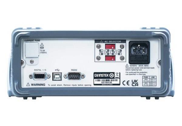 In addition to the fundamental measurement items such as AC/DC voltage, AC/DC current, AC+DC voltage/current, 2Wire/4Wire resistance, frequency, temperature measurement, continuity beeper and diode test, GDM-9052 is equipped with the capacitance measurement function. Furthermore, the GDM-9052 also provides many math functions, including maximum/minimum values, dB, dBm, compare, reading hold, algorithms (MX+B, 1/X, %) etc. to meet the measurement requirements for manufacturing process tests, educational experiments and testing facilities.
