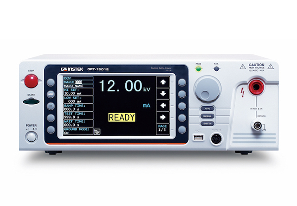 GW Instek introduces the high DC voltage model of safety analyzer - the GPT-15012, which is the safety analyzer to comply with IEC 61010-2-034 (Safety requirement for electrical requirement for measurement, control and laboratory use – particular requirements for measurement equipment for insulation resistance and test equipment for electric strength), which stipulates that the requirements of the software and hardware interfaces must be followed while designing high voltage and insulation resistance test and measurement instruments so as to ensure that users are provided with necessary protection and warning while using the instruments.